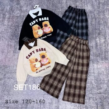 Set áo nỉ cổ bẻ Capybara + quần umi dạ cao cấp co dãn thoải mái cho Gái xinhsize ( 20- 47kg )