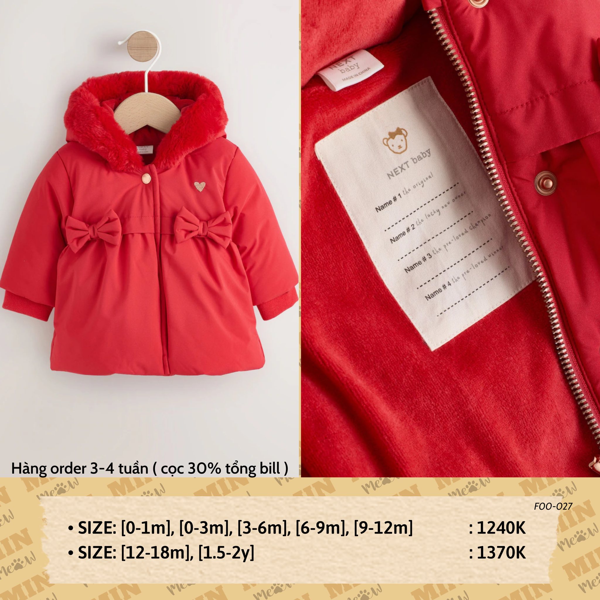 ÁO KHOÁC BABY NEXT ☃️☃️☃️