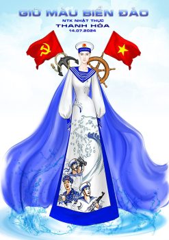 Bộ sưu tập ” Giữ màu biển đảo sẽ là những mẫu áo dài được lấy cảm hứng thiết kế từ hình ảnh những chiến sĩ hải quân đang ngày đêm canh giữ chủ quyền biển đảo của đất nước.