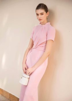 Chiếc váy duoc thiết kế xoắn eo cổ gấu nơ. Form bút chì co tay siêu snag. Form tôn dang tuyệt đối. Trên nền vai tây dư xịn cua hãng. Màu hồng pastel ngọt ngất ngay. Form chuẩn xecop