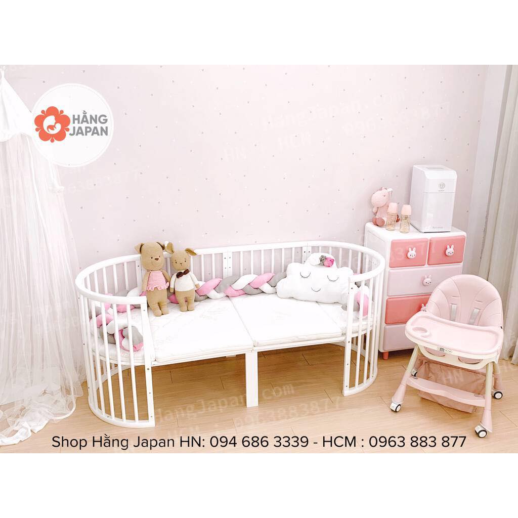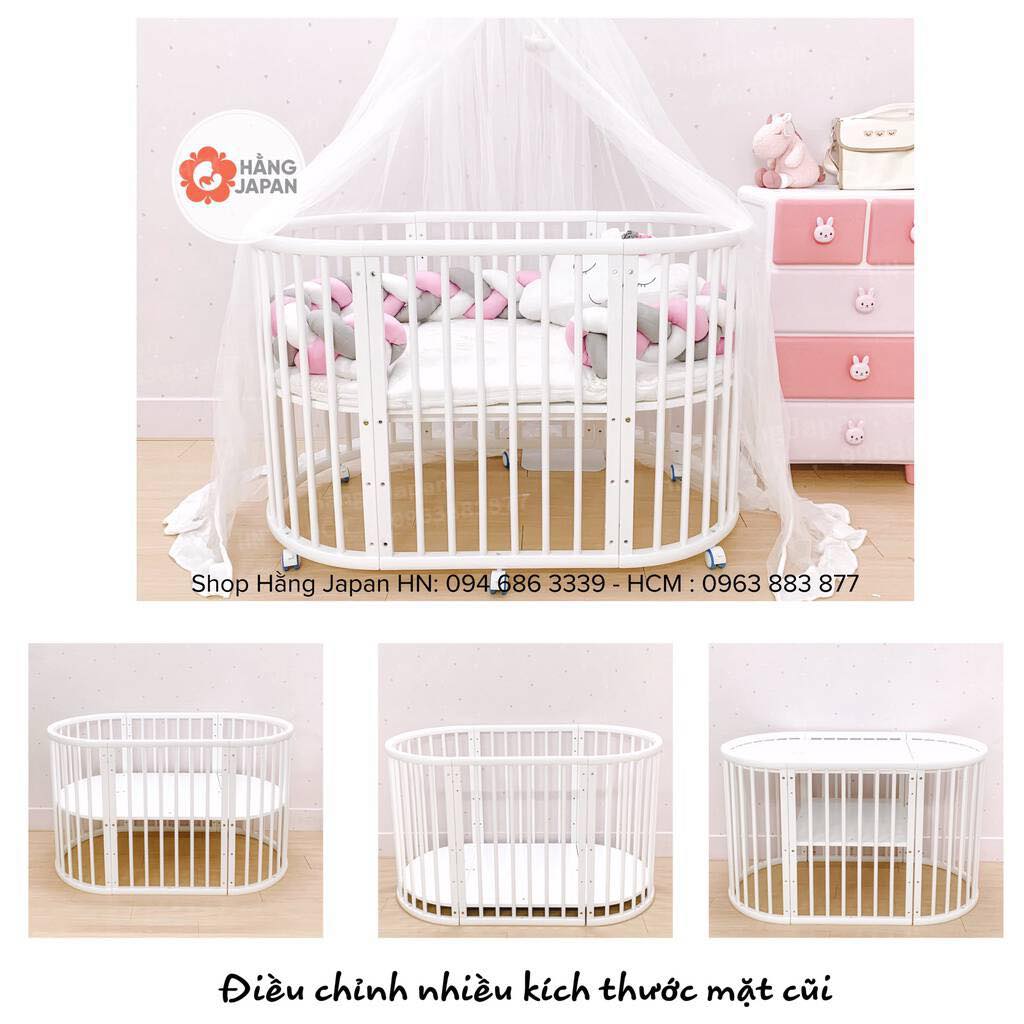 – Có thể tách riêng lắp thành cũi tròn dùng từ sơ sinh đến 6 tháng, và bàn thay tã cho bé, ko tốn diện tích nhà và cũng vừa vặn với bé hơn