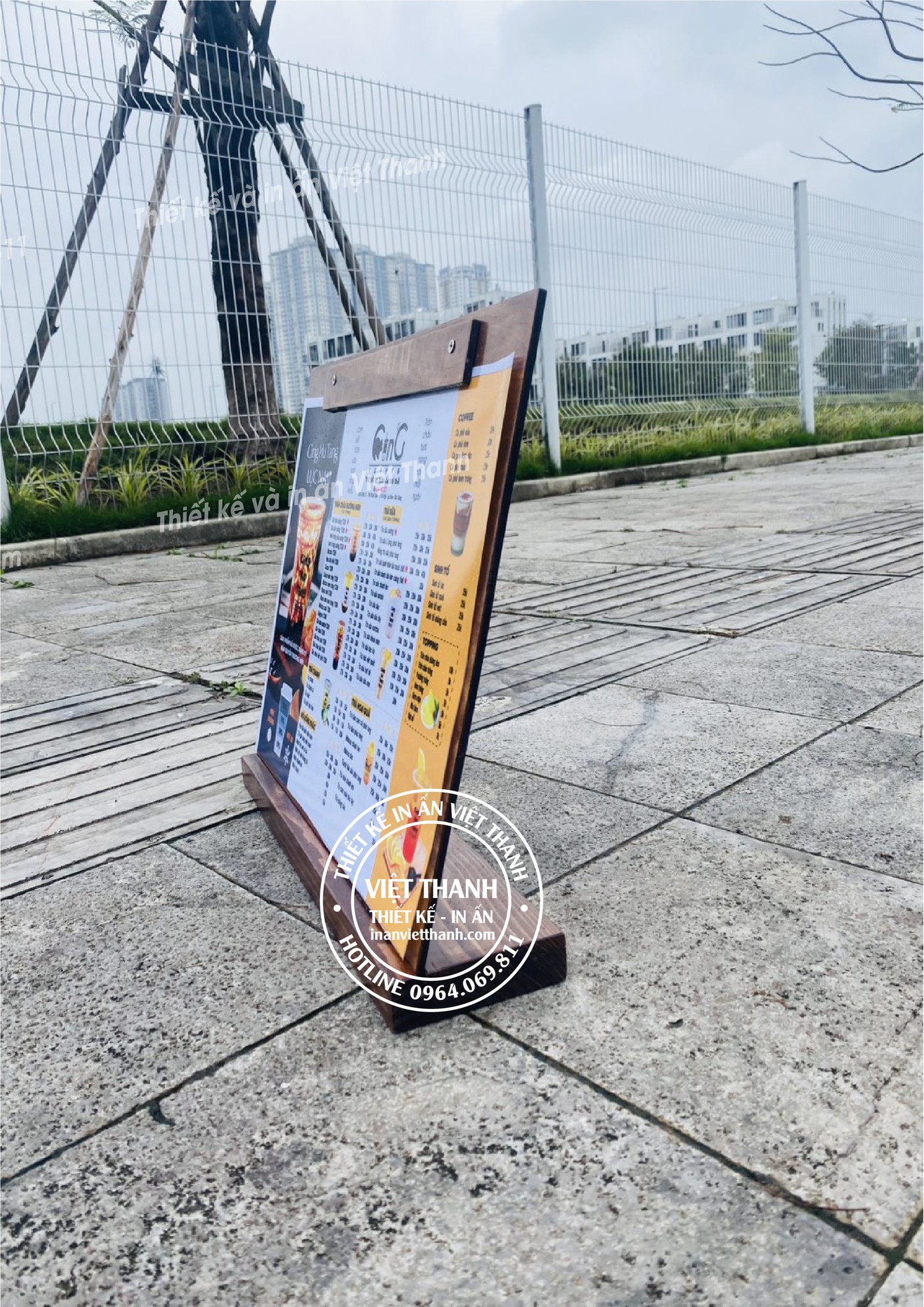 Ngoài ra in Việt Thanh còn có bìa da gáy vít, bìa bồi carton, menu led gỗ, menu bảng gỗ, menu bảng gỗ kẹp vít A3, menu bìa da lõi lá, quà tặng doanh nghiệp in logo thương hiệu… với đa dạng chất liệu