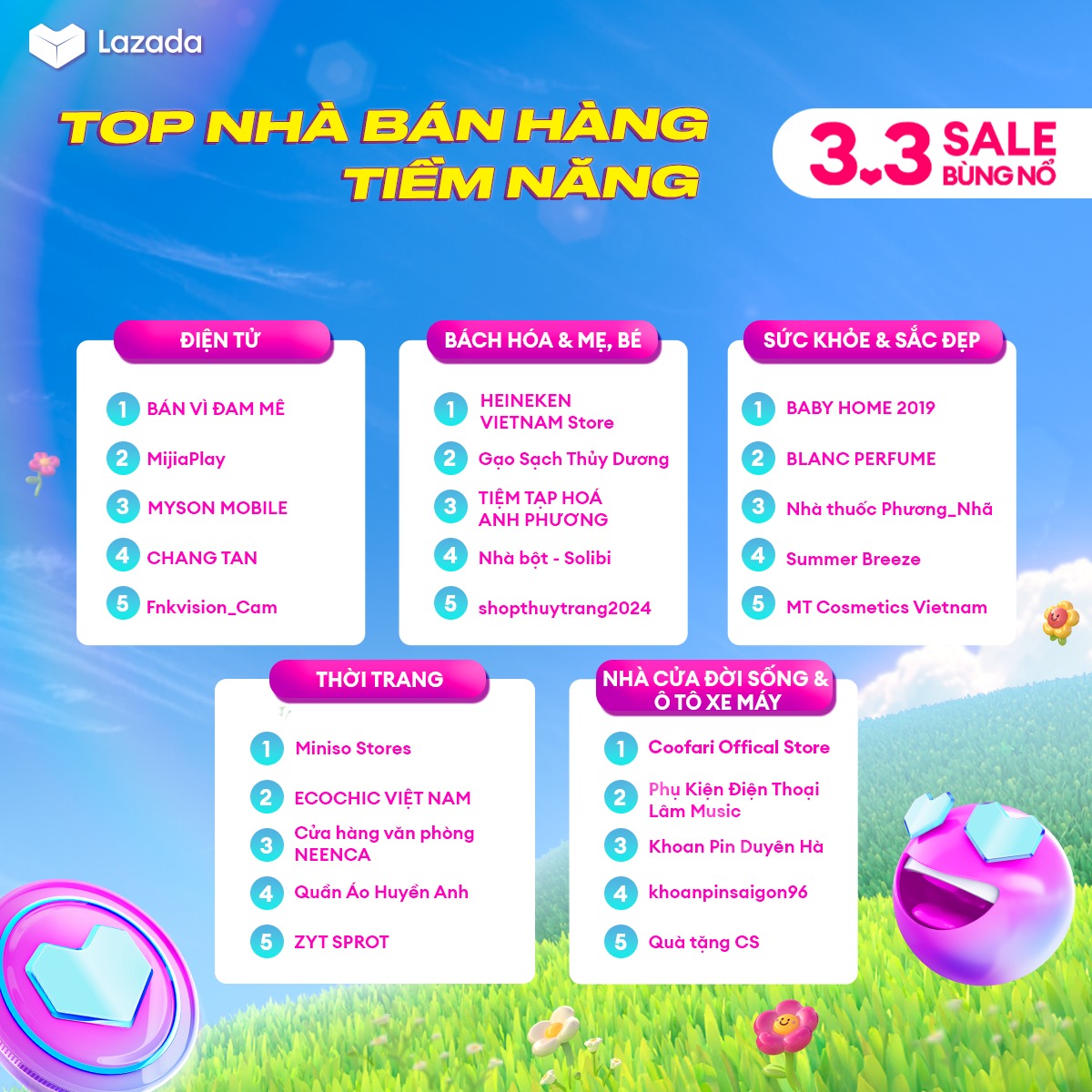 [TỔNG KẾT 3.3 SALE BÙNG NỔ] TOP CÁC NHÀ BÁN HÀNG BÁN CHẠY TOÀN SÀN