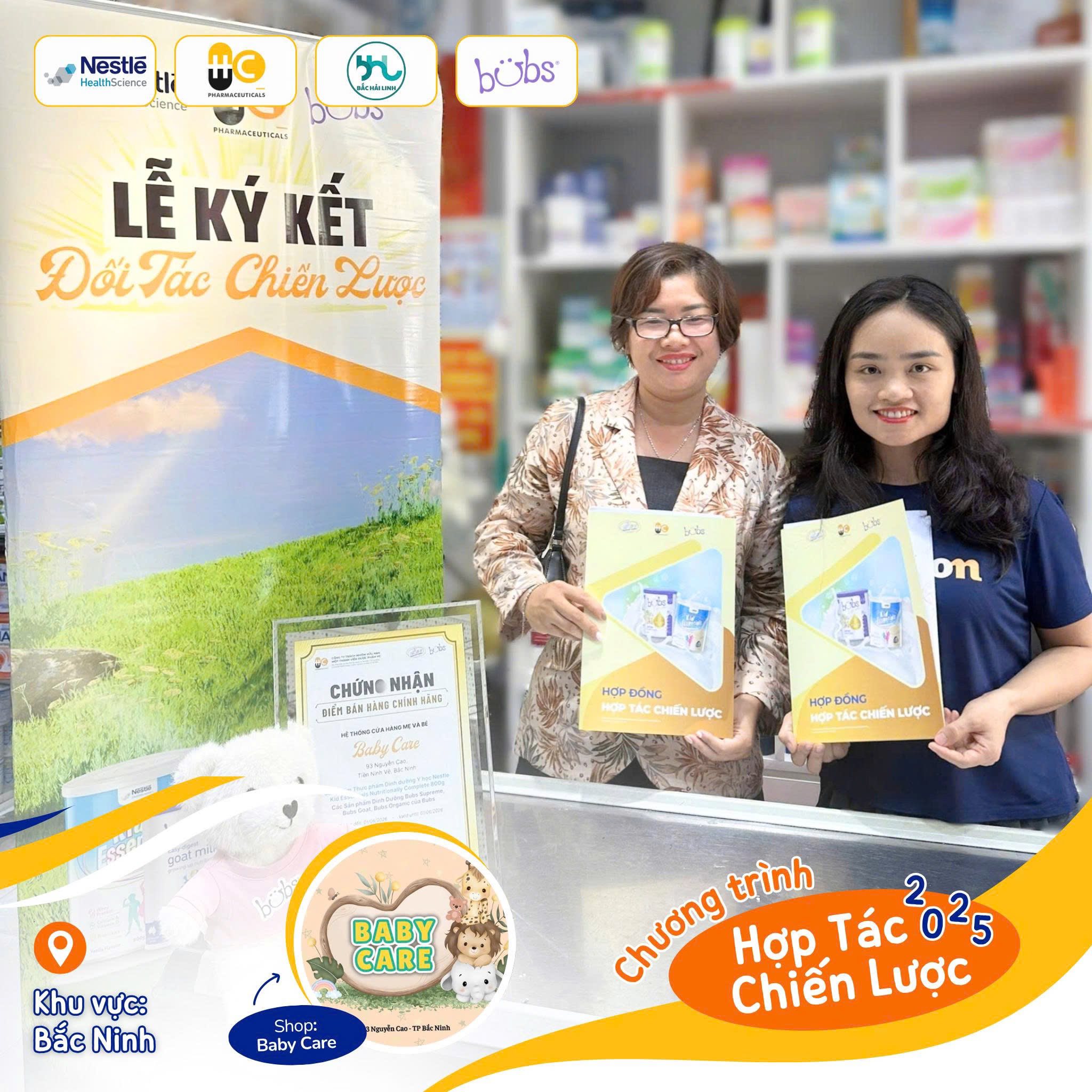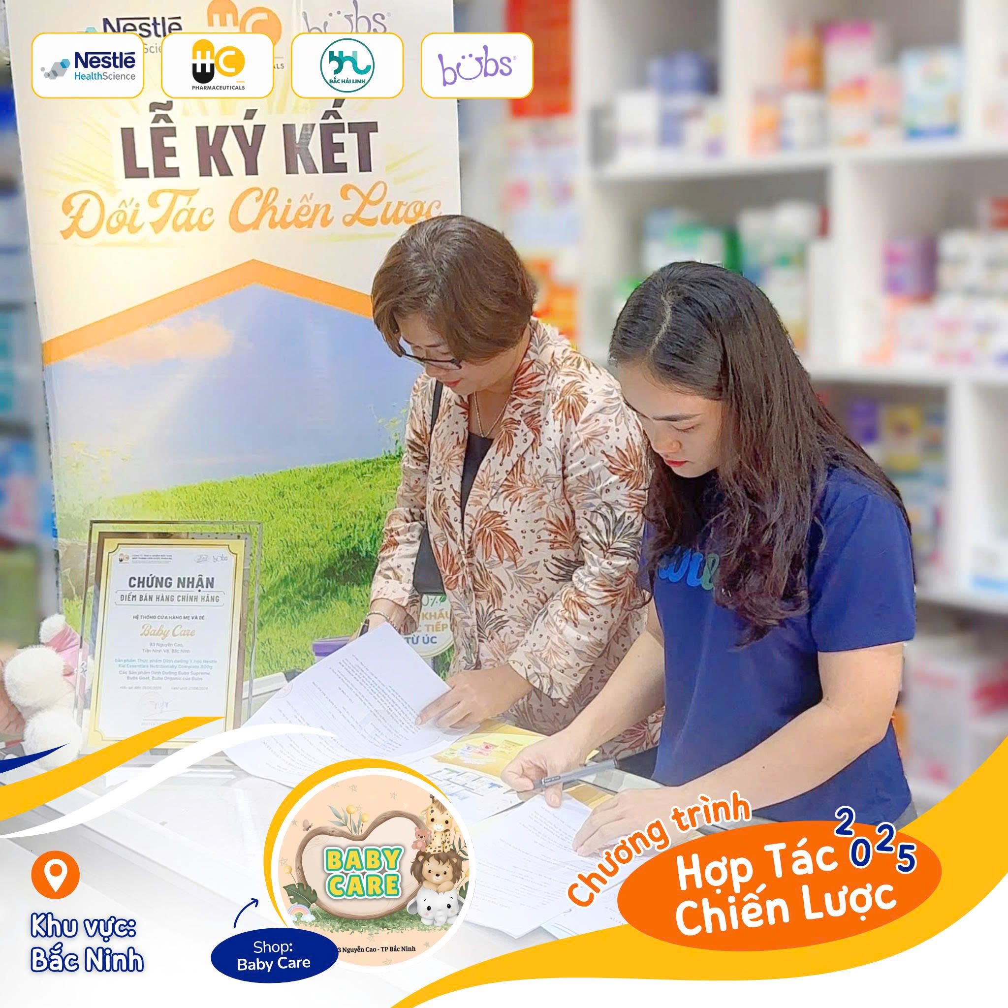 🤝Baby Care chính thức ký kết trở thành đối tác chiến lược khu vực Bắc Ninh của Công ty HC Pharma – đơn vị nhập khẩu và phân phối độc quyền sữa Bubs và Kid Essentials tại thị trường Việt Nam.