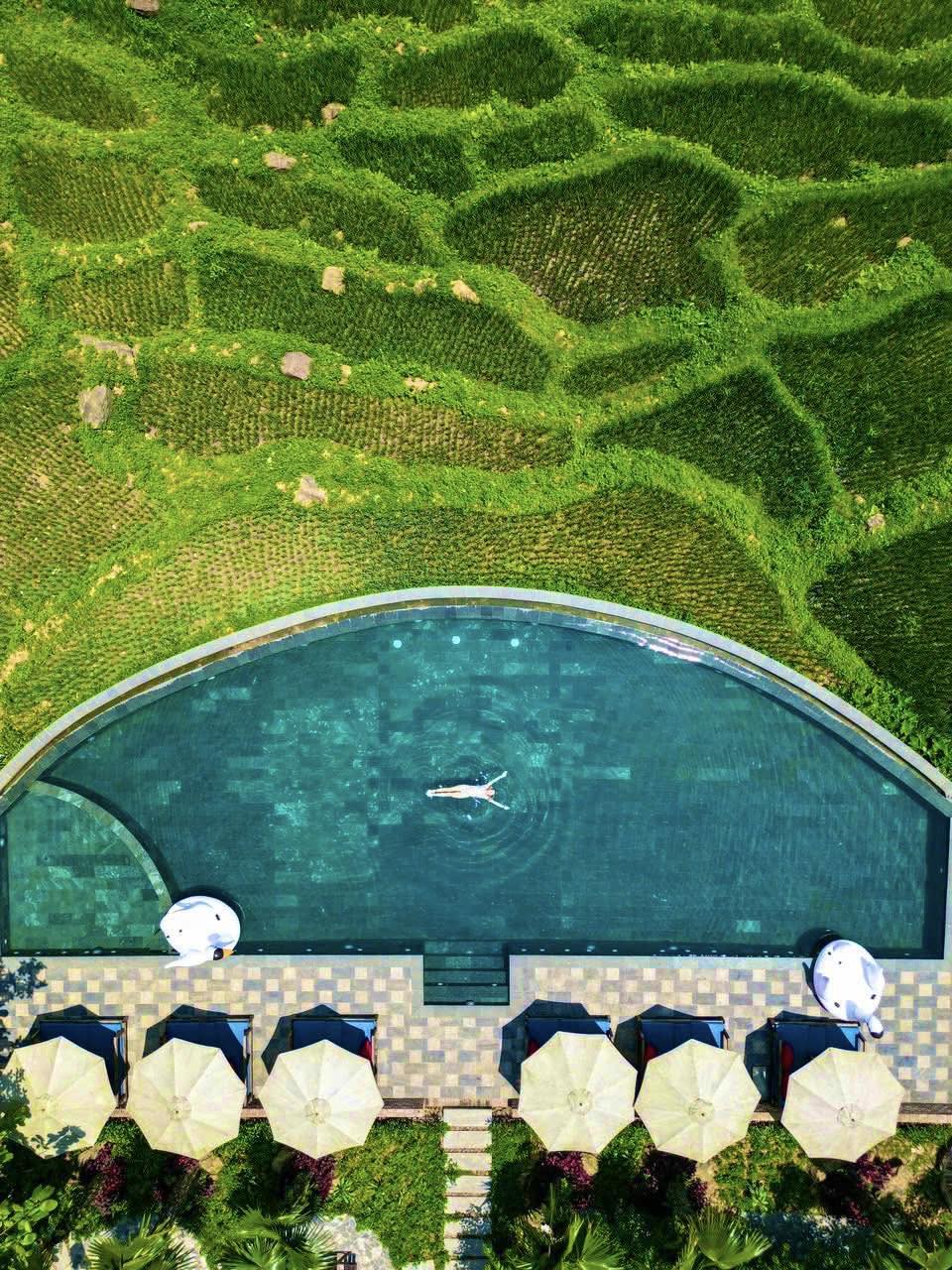 ☘️Sử dụng bể bơi vô cực view ruộng bậc thang và thung lũng Pù Luông