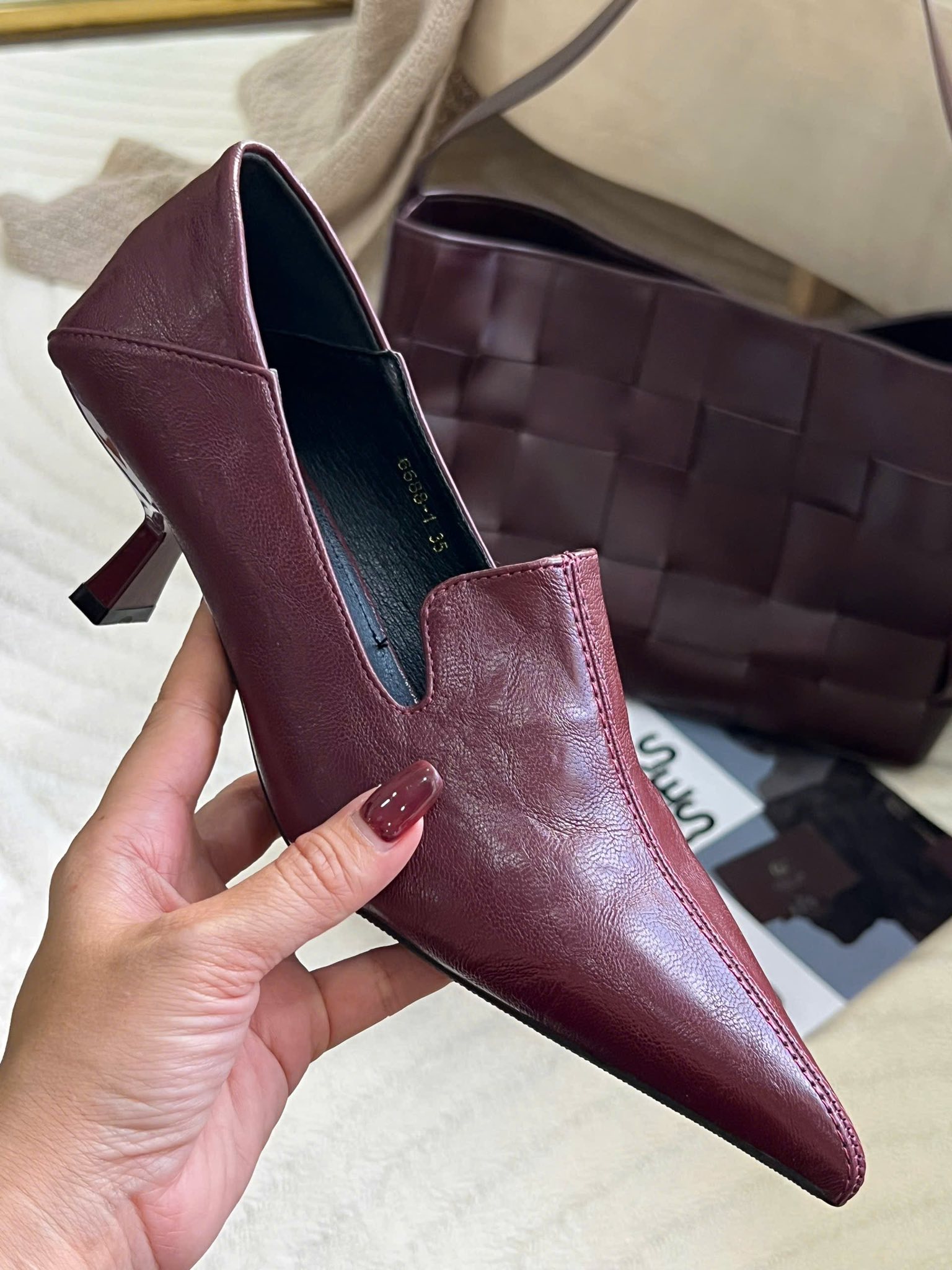 #Korean #PointedToe #Heels #GUU987 #Code #GUU987 #Size #Color #Red #Wine #Brown #YOD06955 #Chi #tiết #sản #phẩm #Thiết #kế #Form #mũi