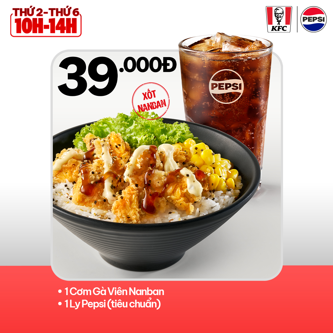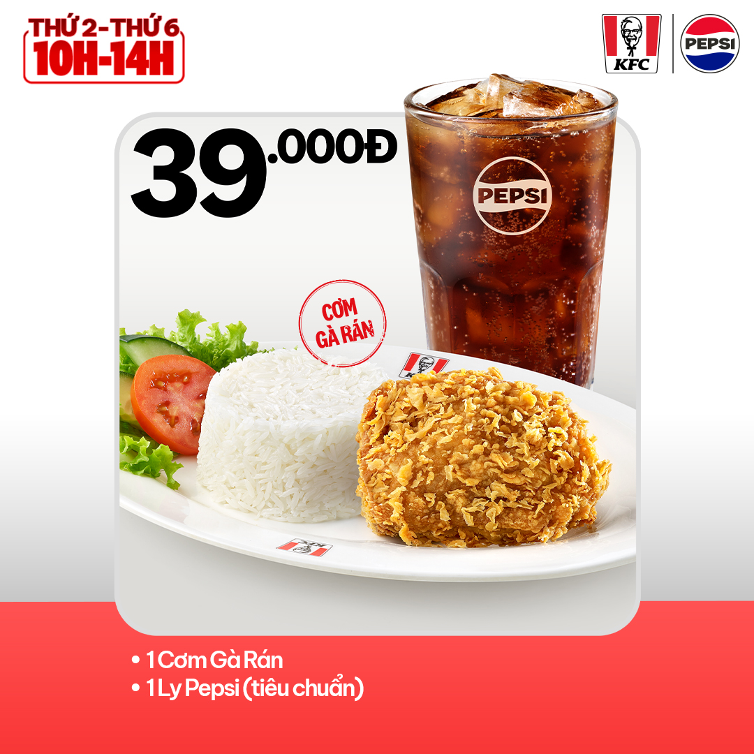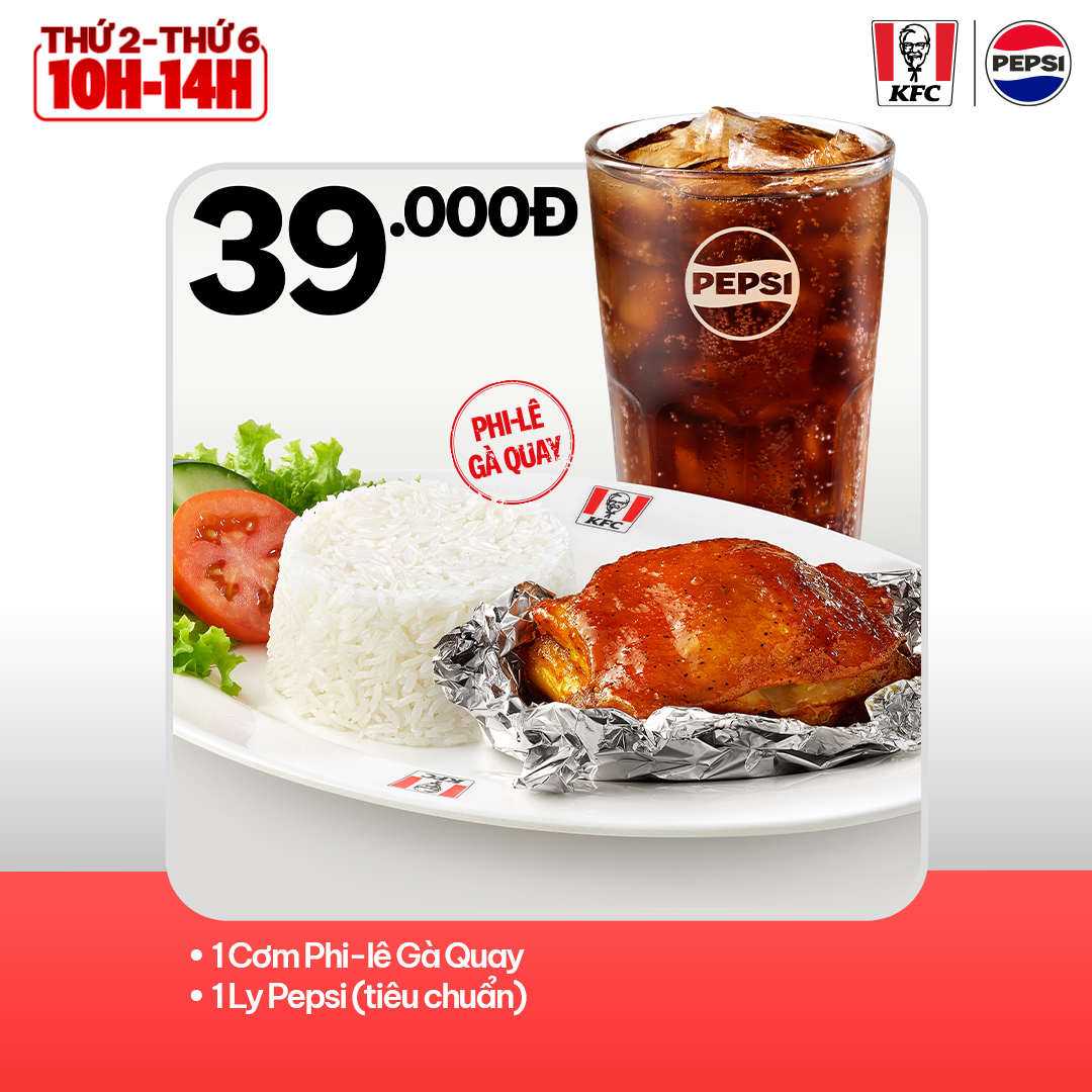 📌 Đối với những nhà hàng không bán Cơm Phi-lê Gà Quay, áp dụng Cơm Gà Rán + Pepsi (Tiêu chuẩn) – 39.000Đ
