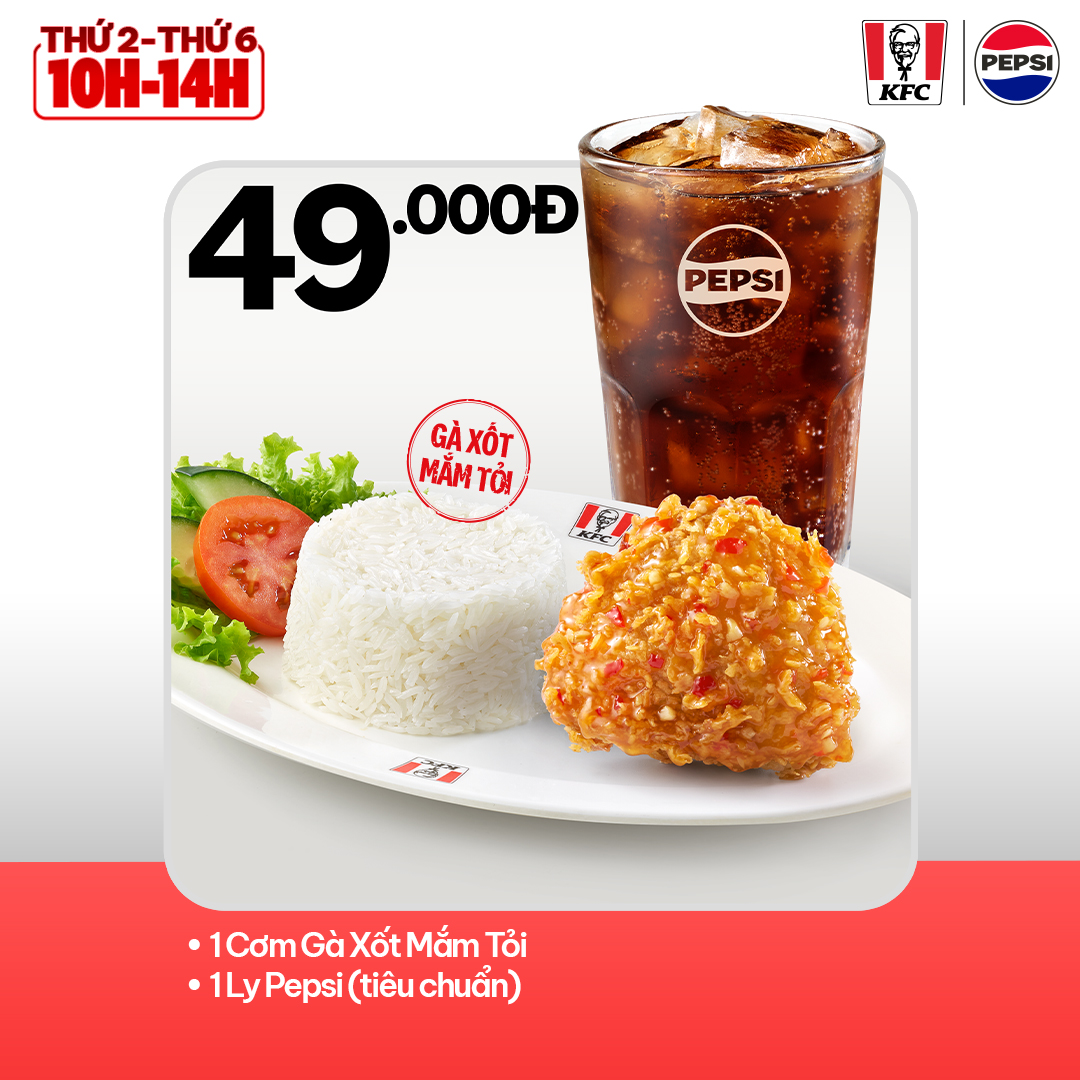 • Cơm Gà Sốt Mắm Tỏi + Pepsi (Tiêu chuẩn) – 49.000Đ