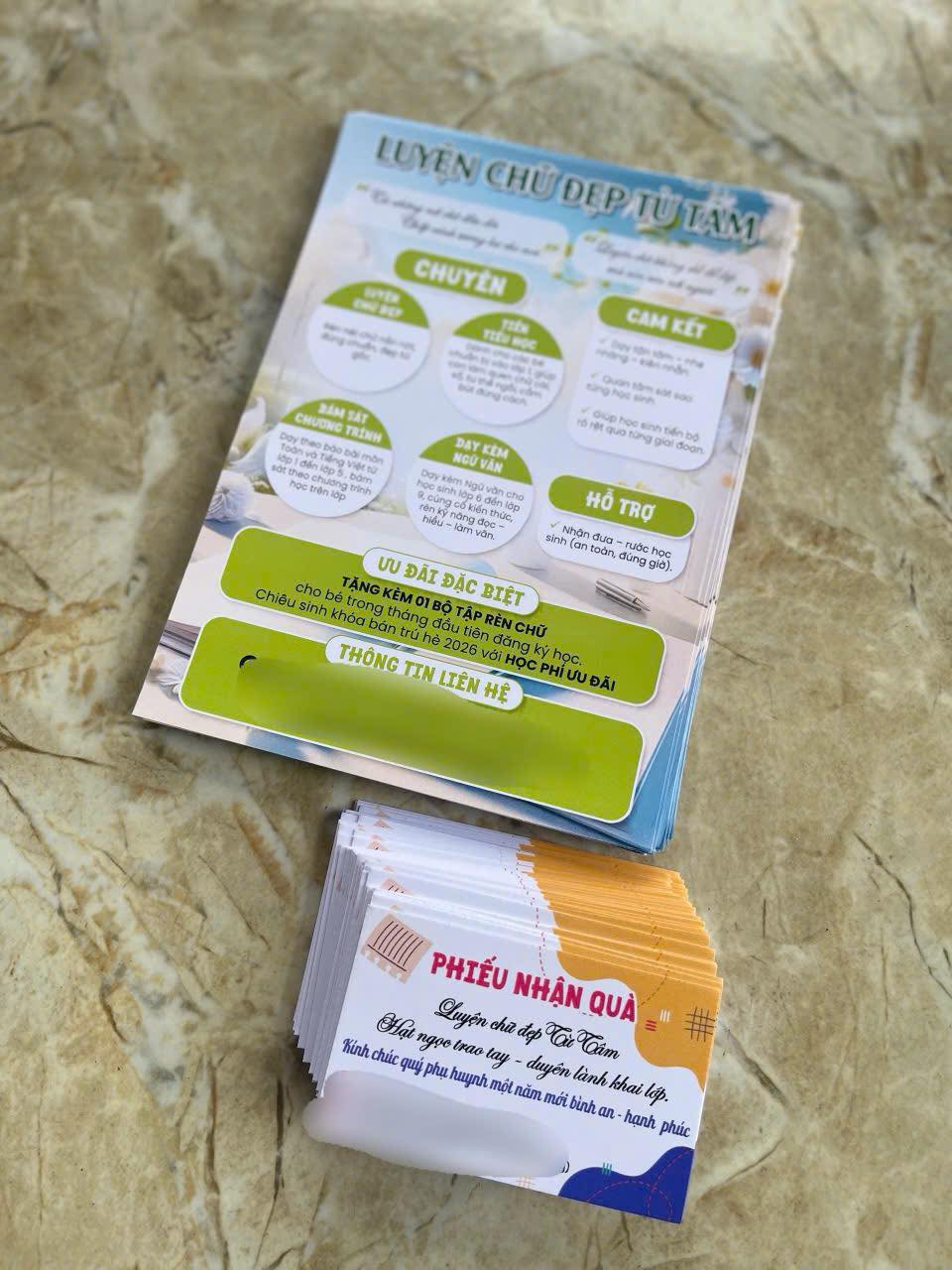 Vừa hoàn thiện combo tờ rơi + phiếu nhận quà cho khách hàng trong lĩnh vực giáo dục