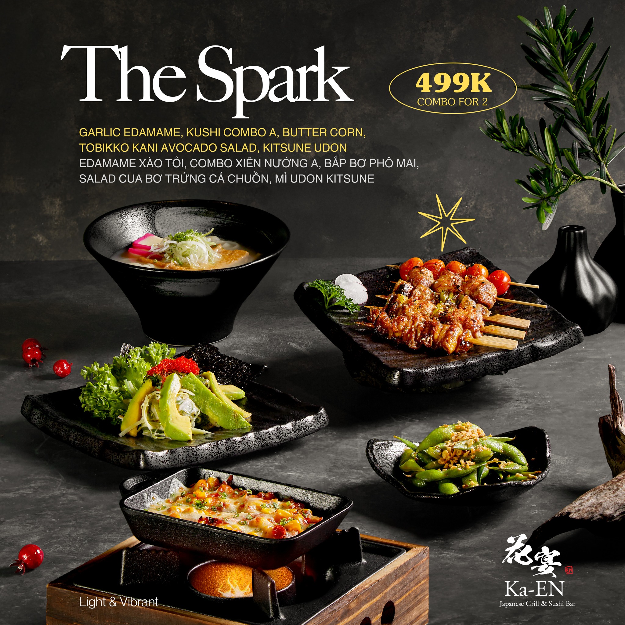 Dù đó là tiệc Tất niên ấm cúng hay buổi Tân niên hứng khởi, Ka-EN luôn là nơi lý tưởng để bạn lựa chọn chiêu đãi những người quan trọng nhất của mình! Bên cạnh ưu đãi Soft Opening GIẢM 20% toàn bộ menu đồ ăn và Happy Hour hàng ngày, Ka-EN mang đến 3 Set Menu được tinh tuyển kỹ lưỡng: