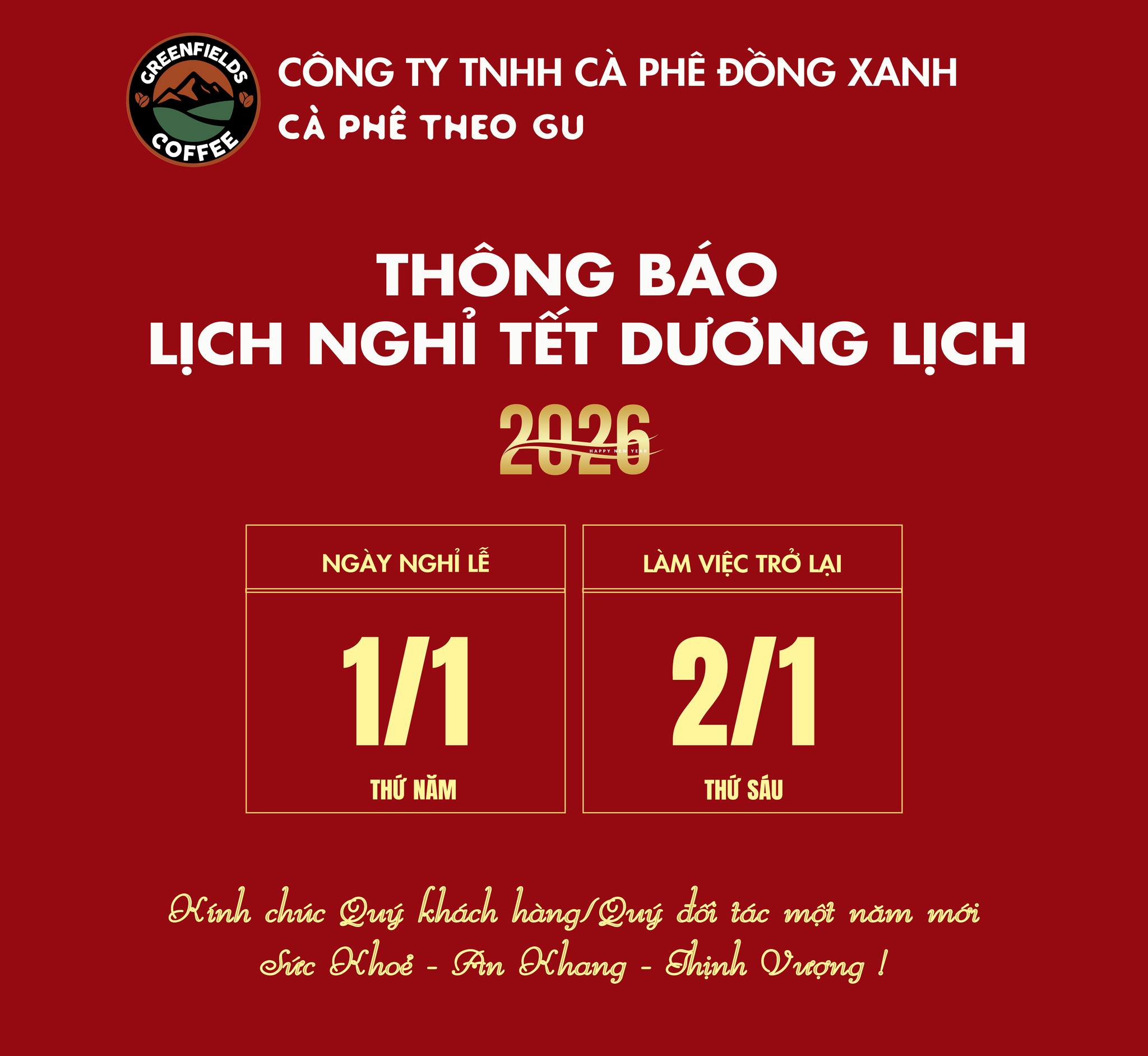 CÔNG TY TNHH CÀ PHÊ ĐỒNG XANH THÔNG BÁO