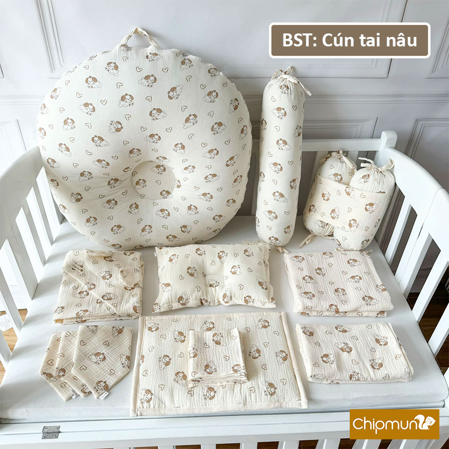 BỘ CHĂN GỐI SƠ SINH GẤU CHERRY