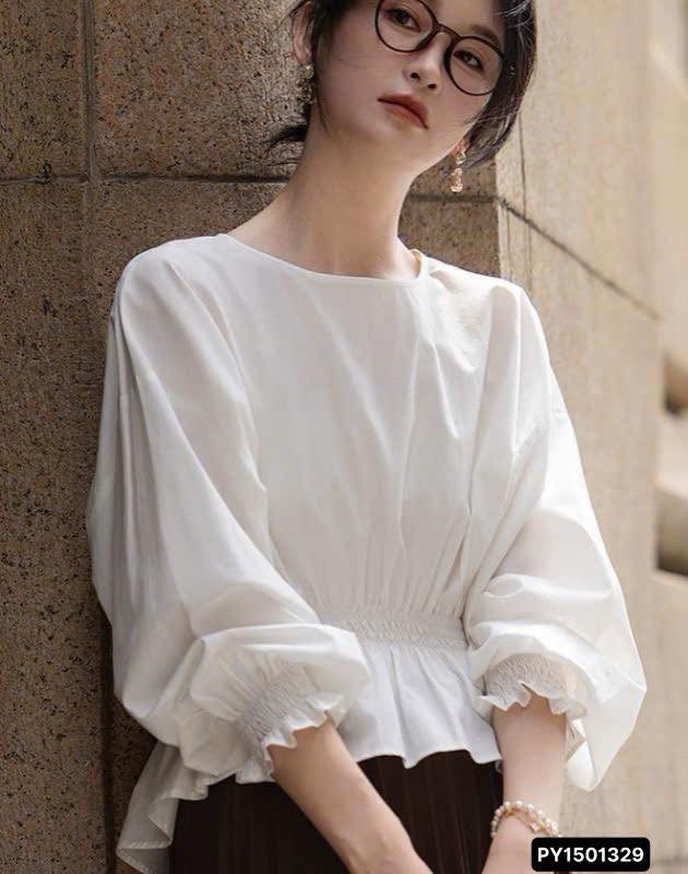 🤍Thiết kế áo blouse trắng tinh khôi với chi tiết bo eo tôn dáng và tay bồng điệu đà. ...