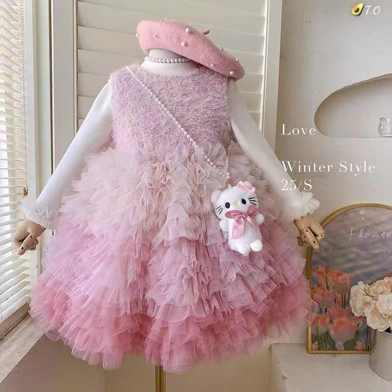 Set áo váy ombre lót lông kèm túi đeo shop sẵn 2 màu sz 90-130