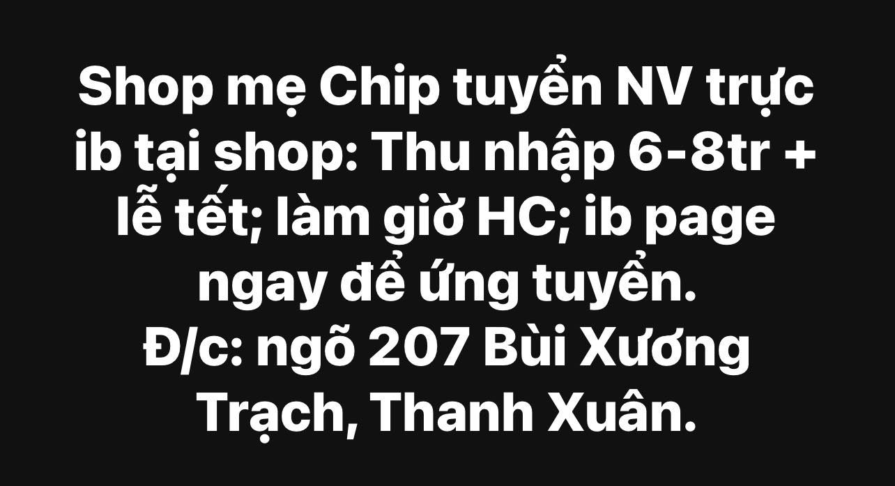 ***Shop mẹ Chip tuyển NV trực ib tại shop