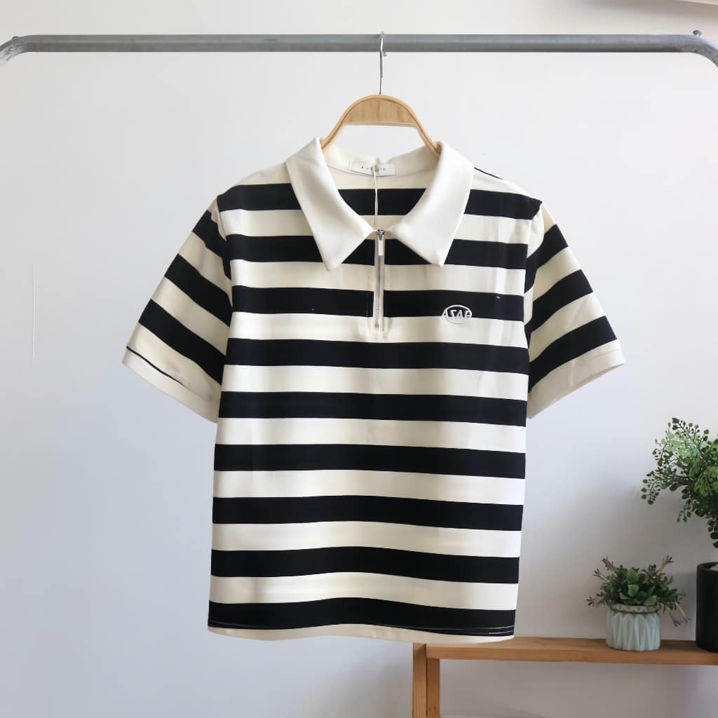 🍀ÁO THUN KẺ KHOÁ CỔ BẺ🫶Với thiết kế kẻ sọc bản to khoá cổ polo tạo nên phong cách trẻ trung, năng động cho nàng ...