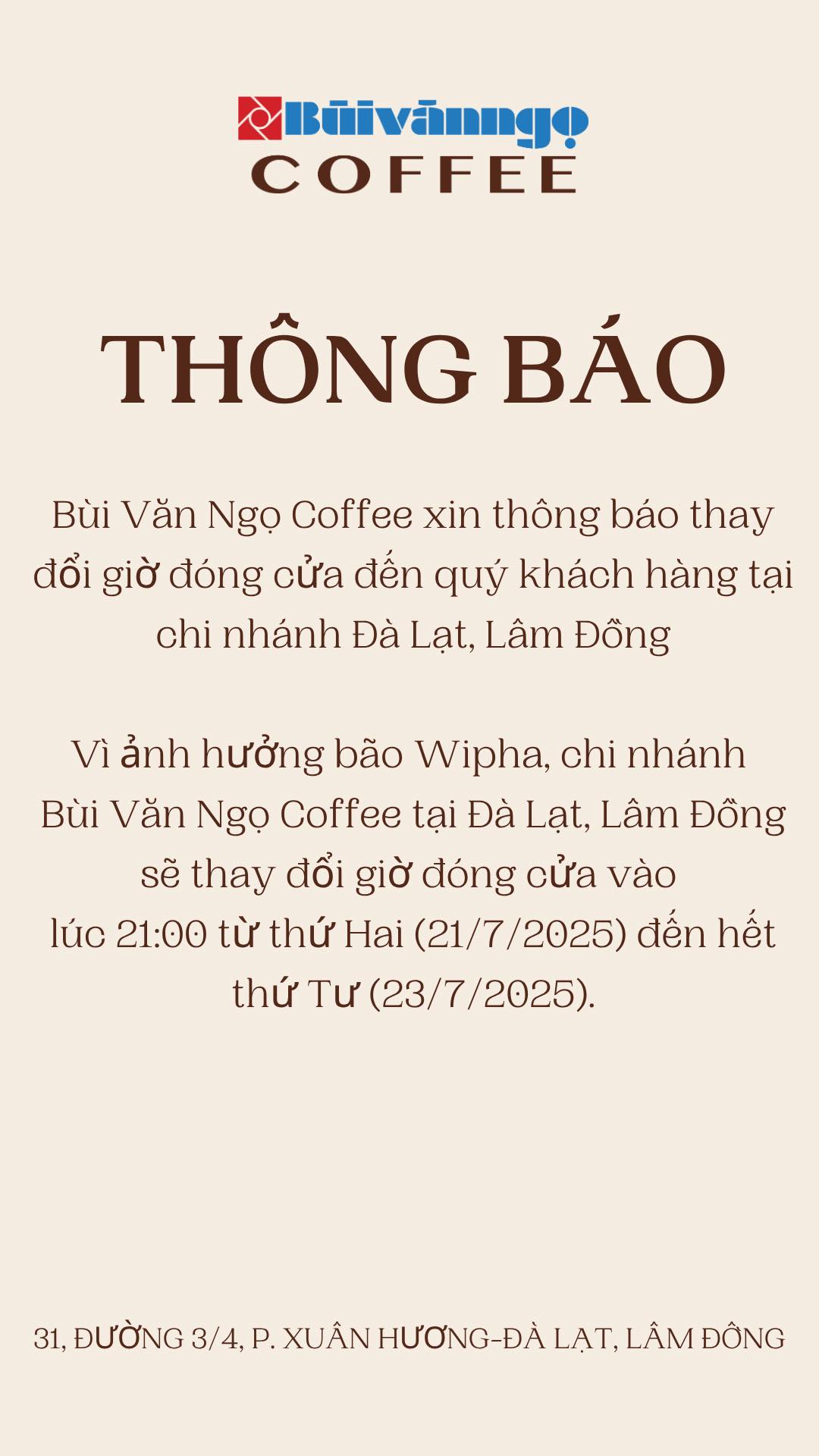 Do ảnh hưởng của bão Wipha, quán Bùi Văn Ngọ chi nhánh Đà lạt ...