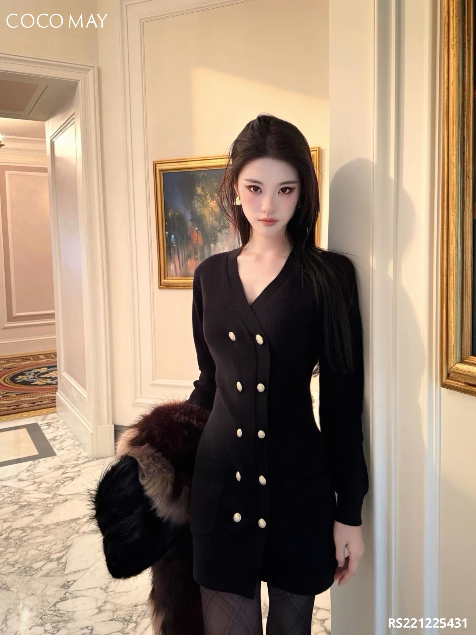 THANH LỊCH & NỮ TÍNH CÙNG VÁY ĐEN CỔ V - XẾP NHÚN ✨