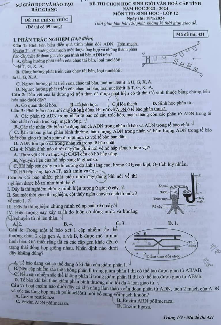 ฤรชฬ thi HSG tiฬnh lฦกฬp 12 mรดn Sinh hoฬฃc nฤm hoฬฃc 2023 - 2024 cuฬa tiฬnh Bฤฬc Giang ฤรชฬ thรขฬy cรด vaฬ ...