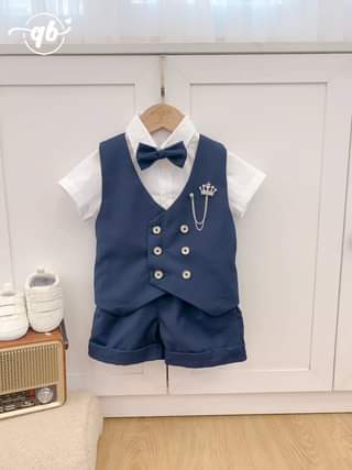Set công tử áo gile nơ cho bé, em restock về thêm rồi các mom ơi