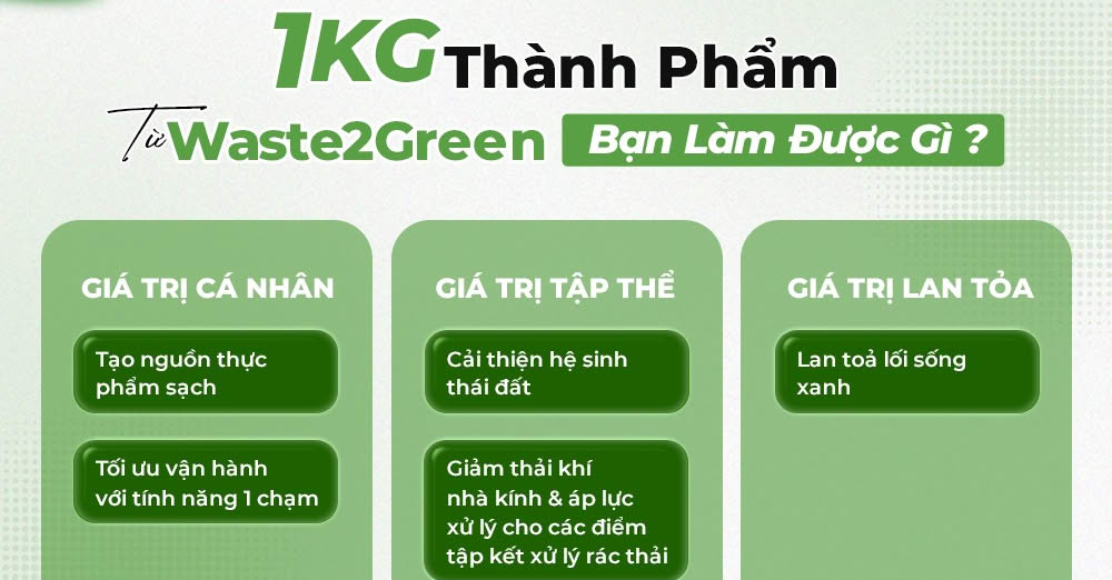 VỚI MỖI 1KG THÀNH PHẨM SAU TÁI CHẾ TỪ WASTE2GREEN, BẠN SẼ LÀM ĐƯỢC GÌ?