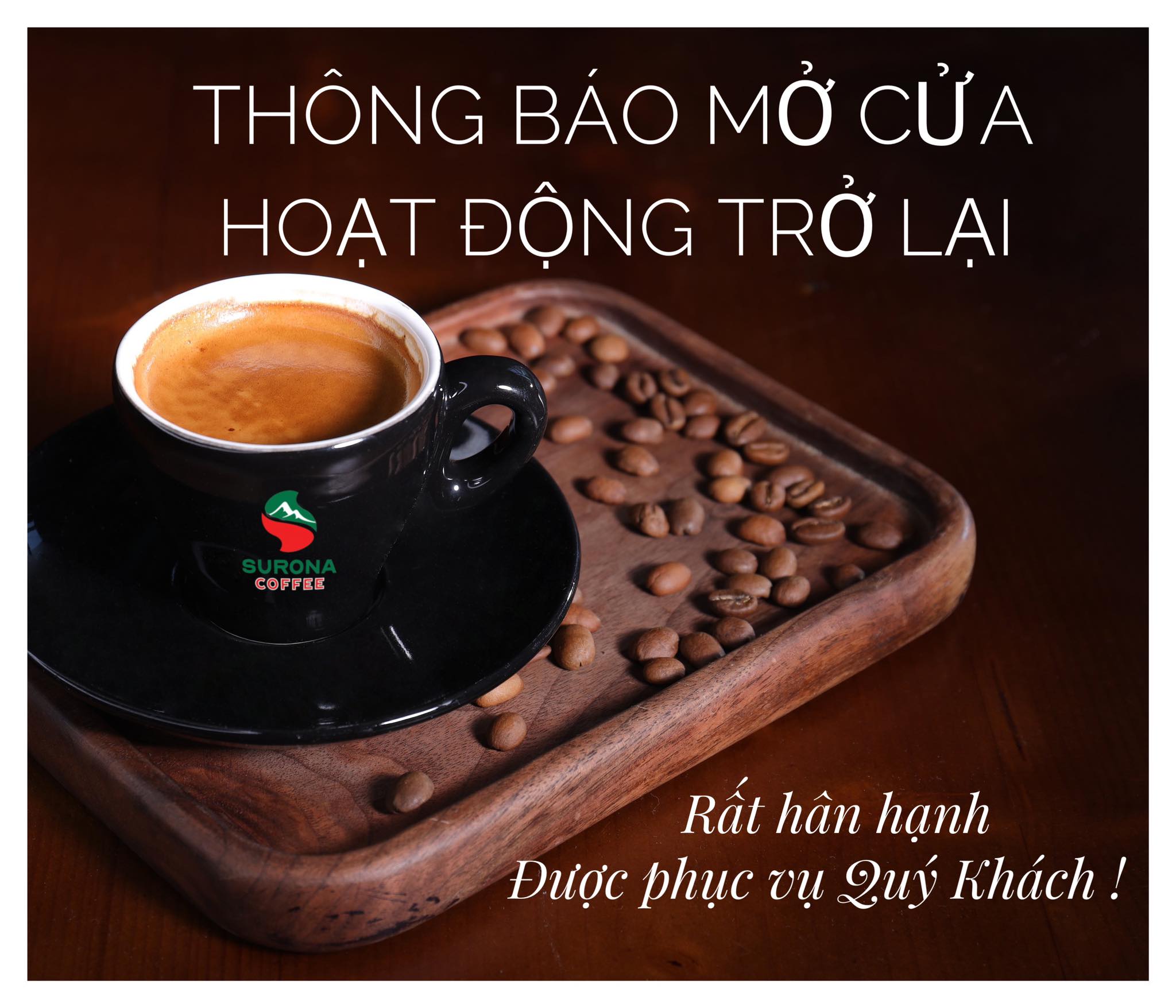 SURONA COFFEE thông báo mở cửa trở lại ,háo hức mong chờ khách hàng thân yêu sau bao ngày xa cách ! Chúc quý ...