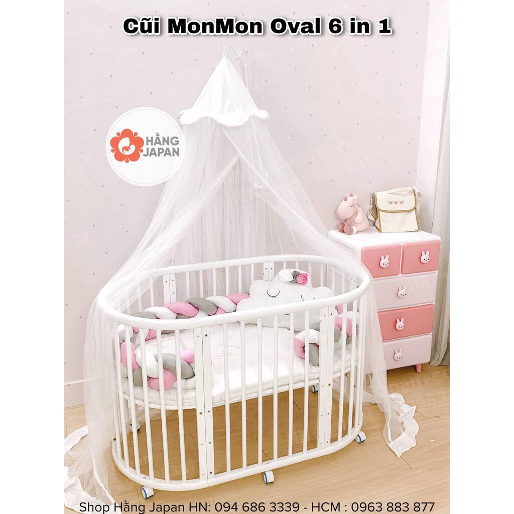 Cũi Oval Monmon đa năng 6in1 điều chỉnh nâng hạ 3 nấc dùng được từ sơ sinh tới 8 tuổi